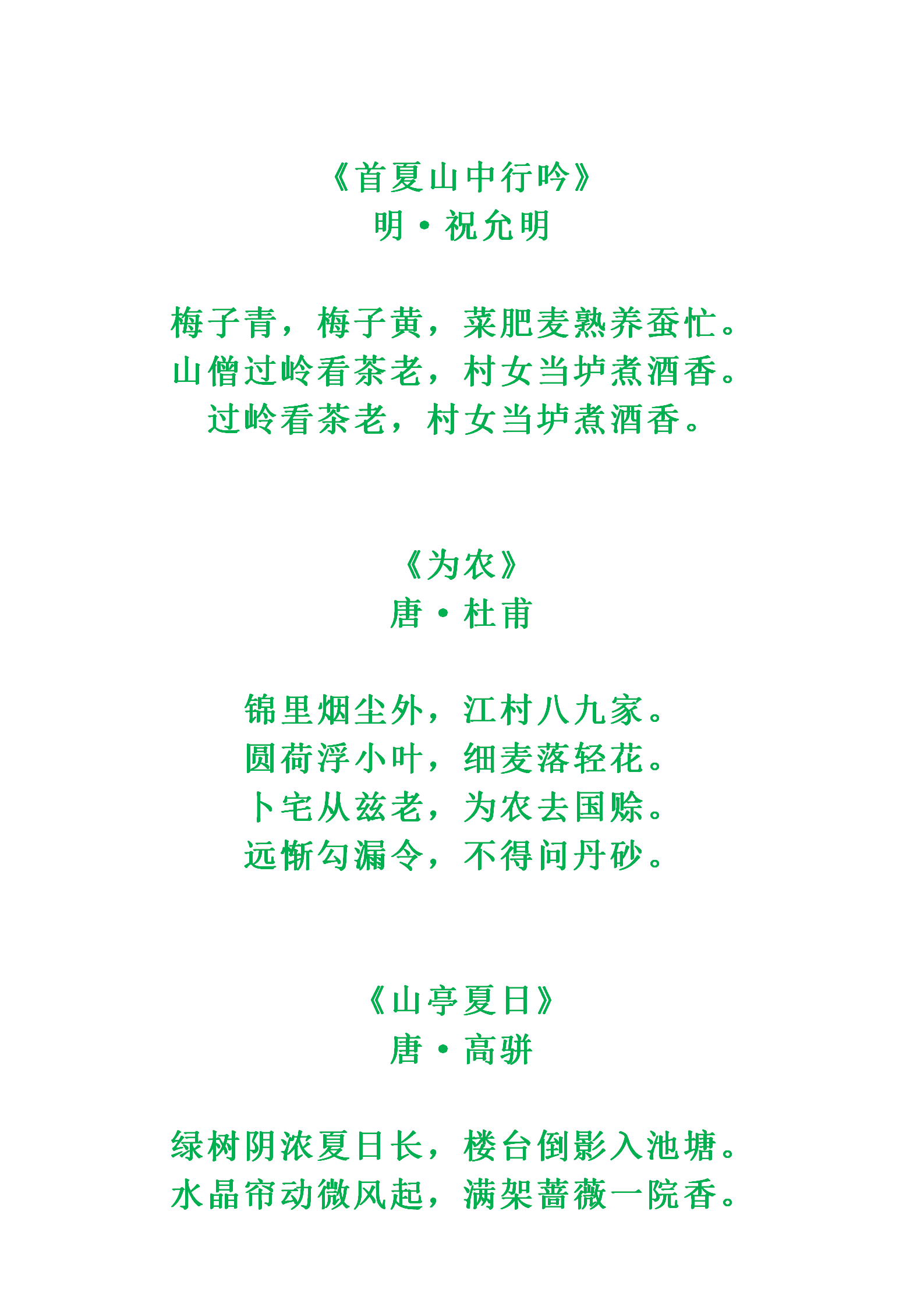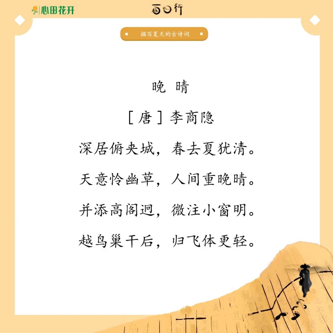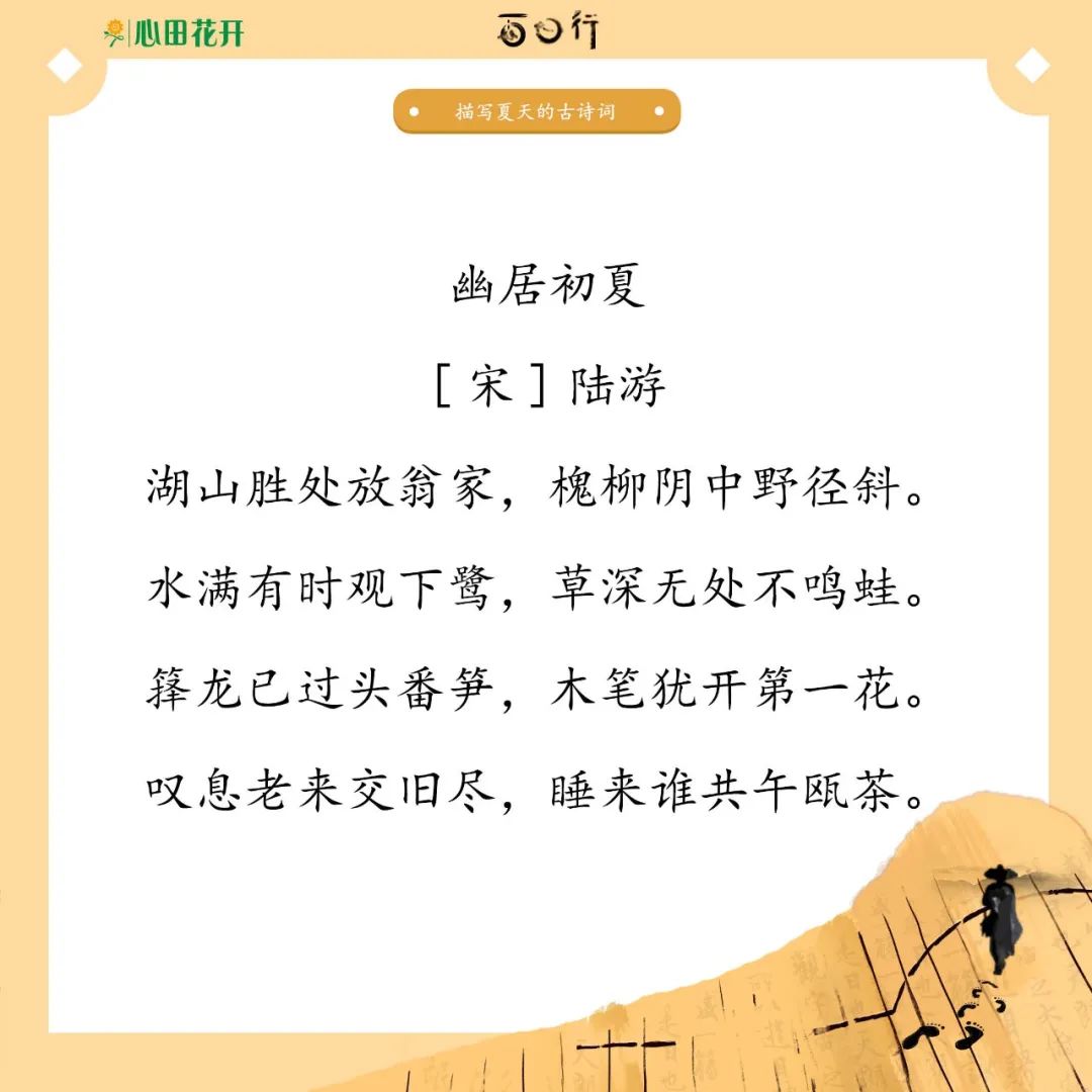 诗人笔下的夏日之美你感受到了吗?收藏起来,分享给好友吧~知识记忆需要时常复习巩固,保存或收藏图片或文章,更方便摘抄积累哟~