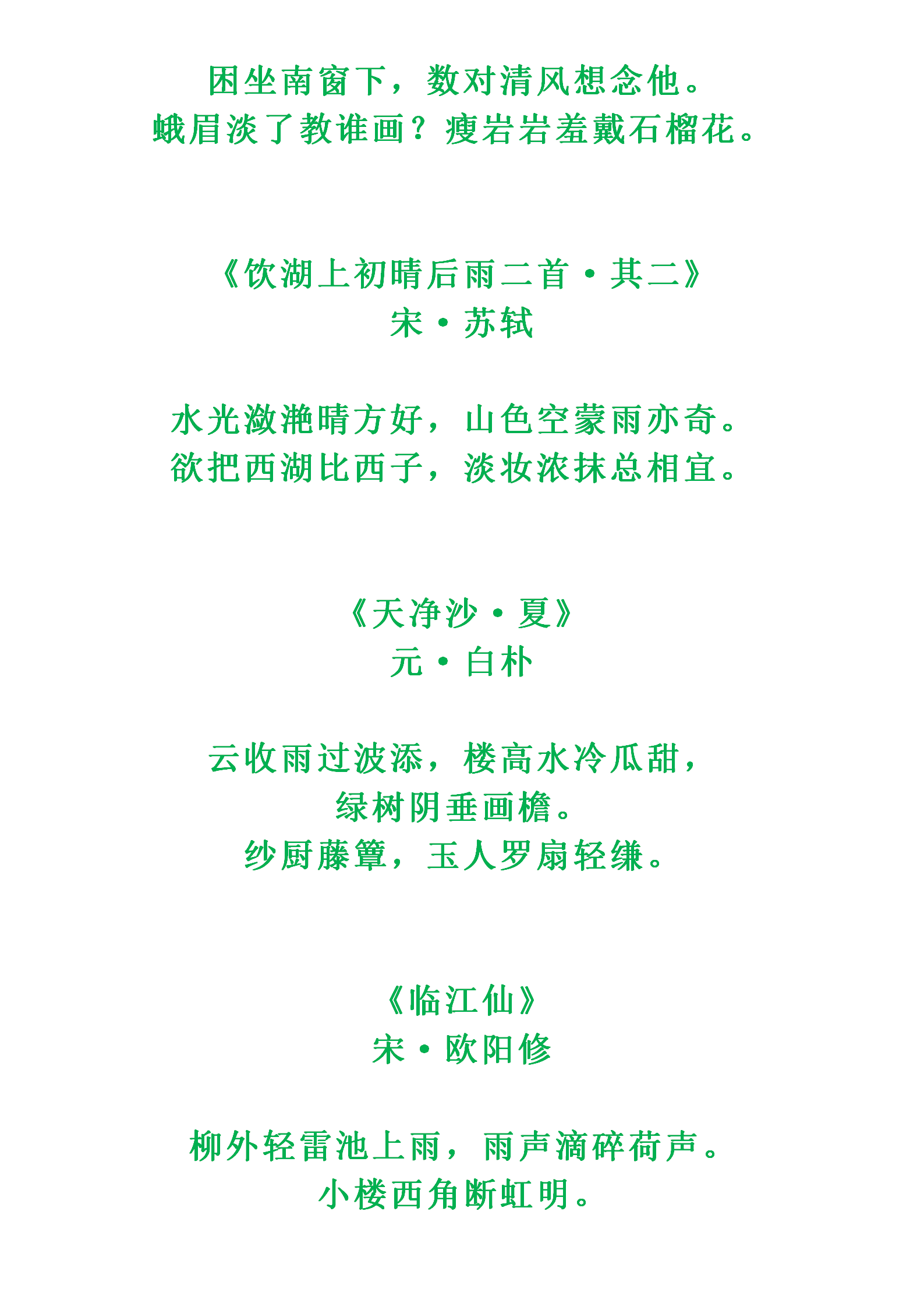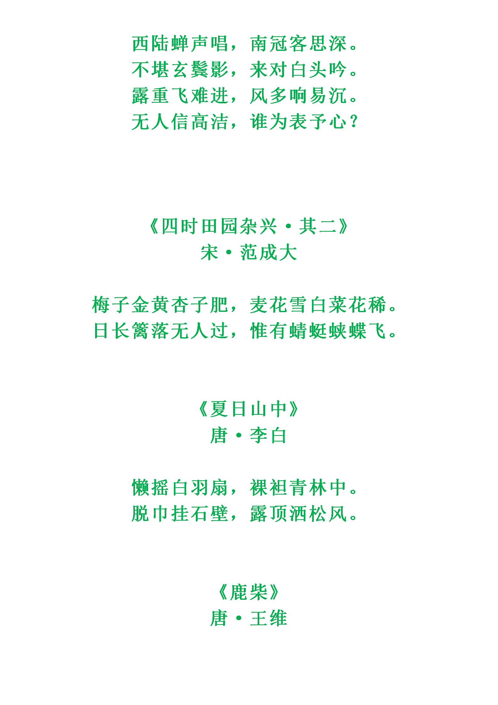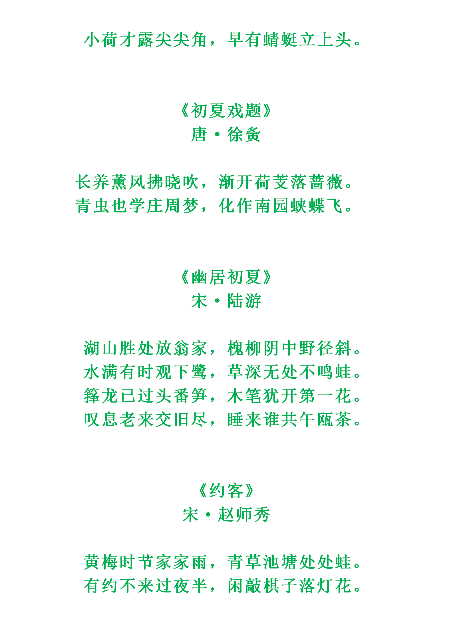 诗人笔下的夏日之美你感受到了吗?收藏起来,分享给好友吧~知识记忆需要时常复习巩固,保存或收藏图片或文章,更方便摘抄积累哟~