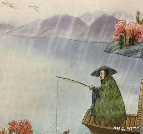 雨中的青山,翱翔的白鹭,两岸的桃花,春江绿水、鳜鱼肥美,江上渔舟,一位头戴青箬笠,身穿绿蓑衣的渔夫,惬意地享受着斜风细雨,不想回去。