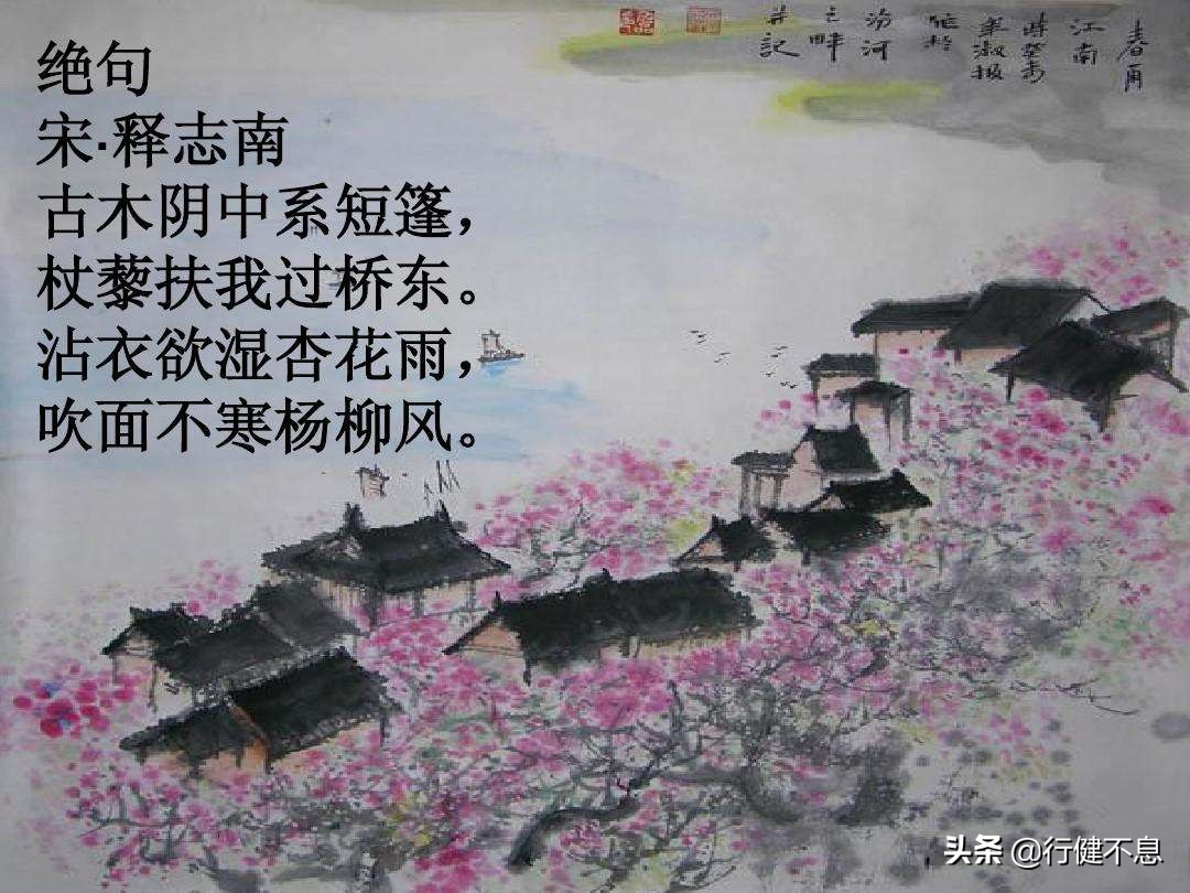 “沾衣欲湿杏花雨,吹面不寒杨柳风”成为了传承不息的咏春名句,凭借这首诗,志南和尚得以留名诗坛,声闻天下。