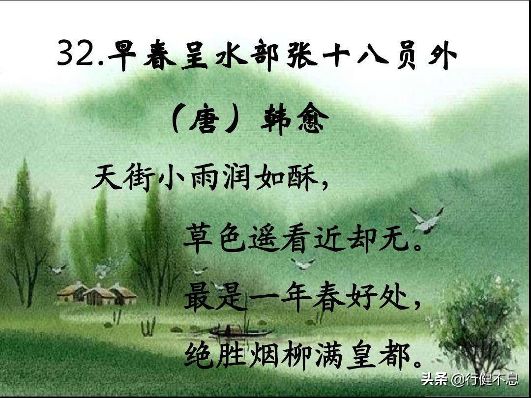 64、天街小雨润如酥,草色遥看近却无。