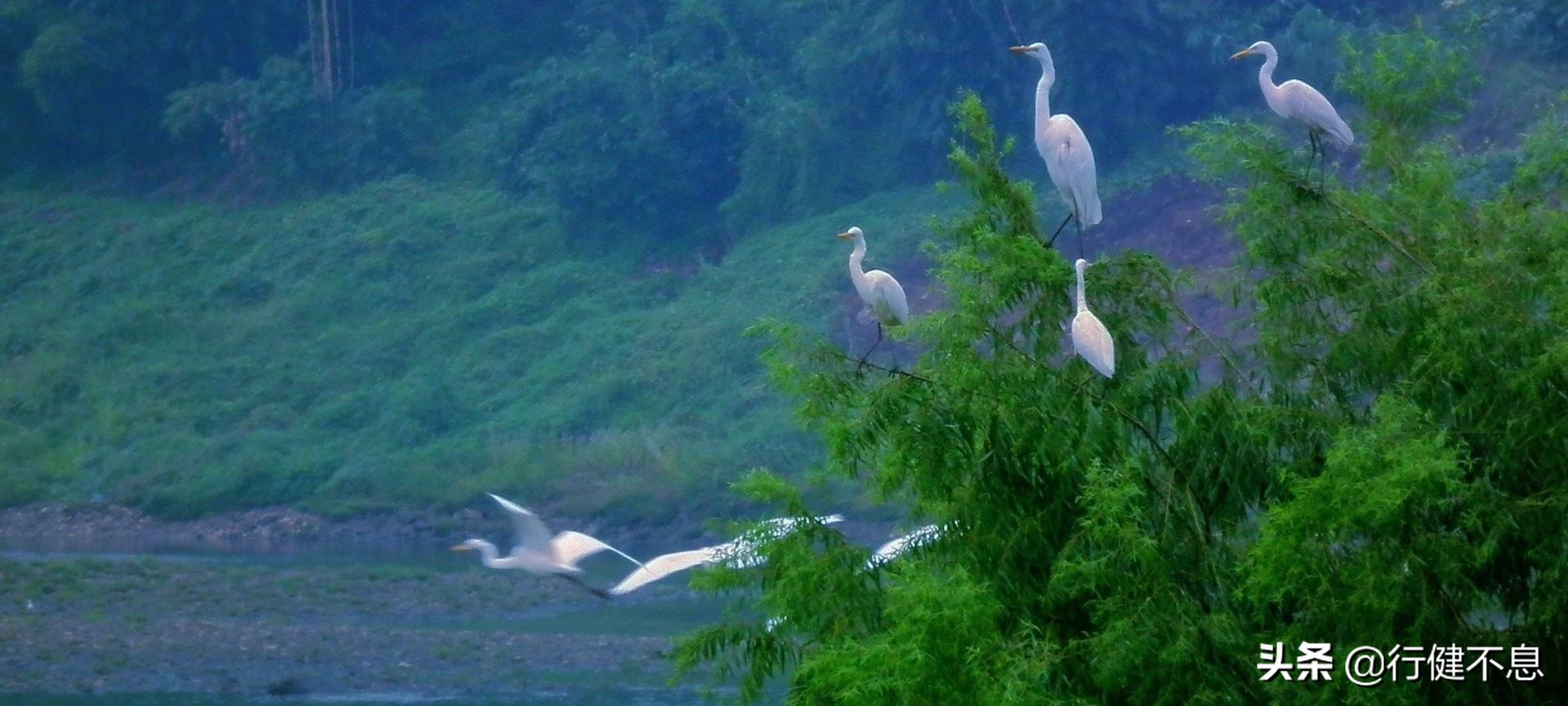 在参天古树的绿阴下,我系了小船,拄着藜仗,缓缓走过小桥,一路向东而去。