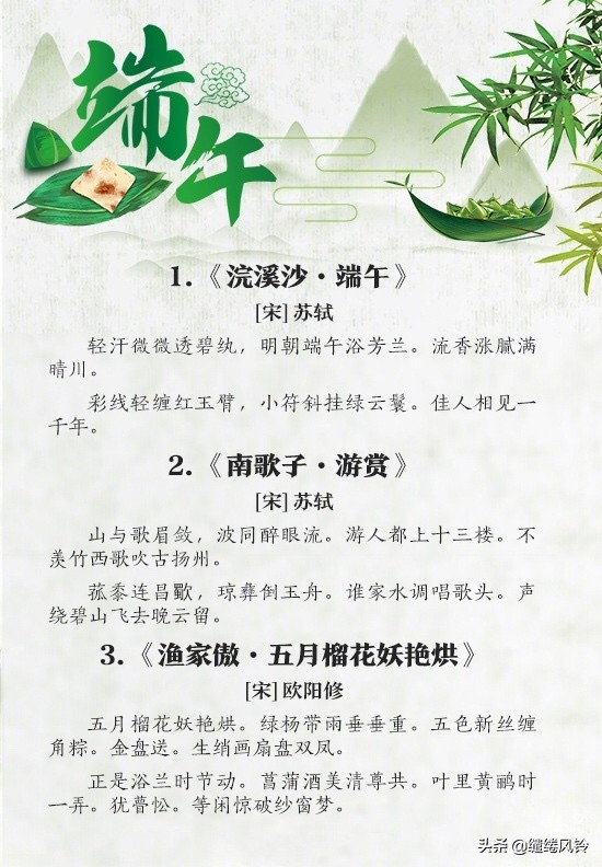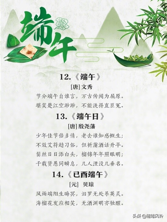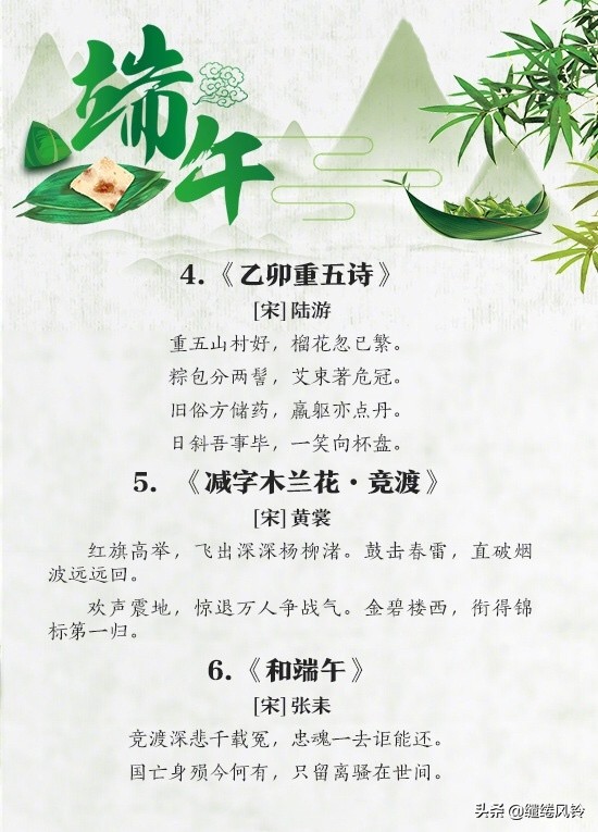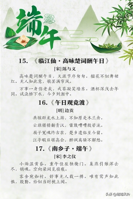 4、空惆怅,谁复吊沅湘。——舒頔《小重山·端午》