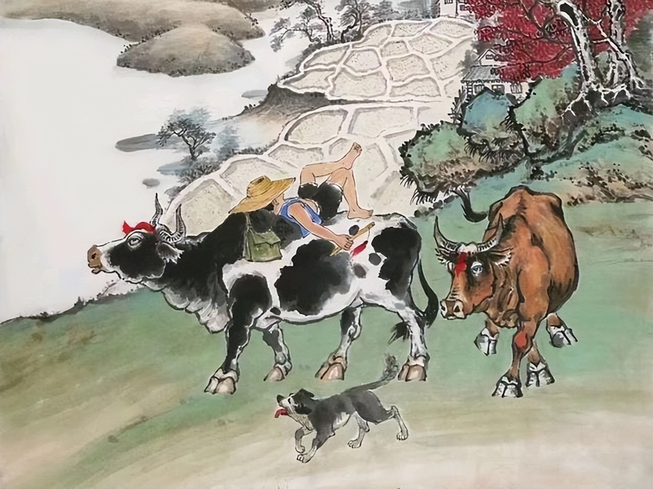 现在村子里基本没人养牛了,很多小孩都没见过牛,更别说牧童了。在古代,牛和人类的日常生活息息相关,牛是生产劳动中不可或缺的工具。牛性情温顺,吃苦耐劳,是孩童的忠实伴侣,所以牧童在中国文化史上也是非常浓厚的一笔。在诗词画中,当文人们的笔投向那些不谙世事、天真童趣的牧童时,他们会通过牧童的幼稚举止表现他们的童趣;或以牧童无忧无虑、怡然自得的生活方式以表现诗人们向往的人生理想,或隐退,或闲适,或热爱,或怀旧…今天给大家分享几首牧童诗词,欣赏的同时,能否找到你儿时的记忆,那闲适、悠闲的乡村生活,有没有你曾经生活的影子。