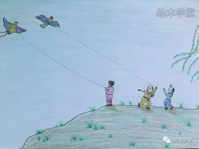 来看看他为这套古诗打卡课绘制的部分彩铅配图: